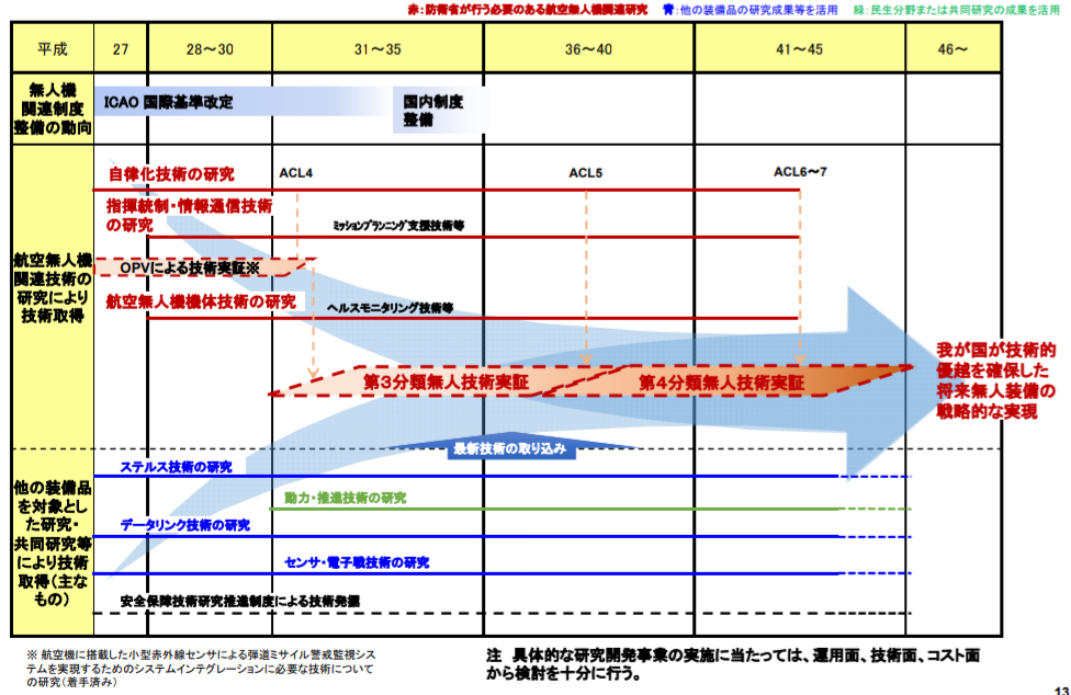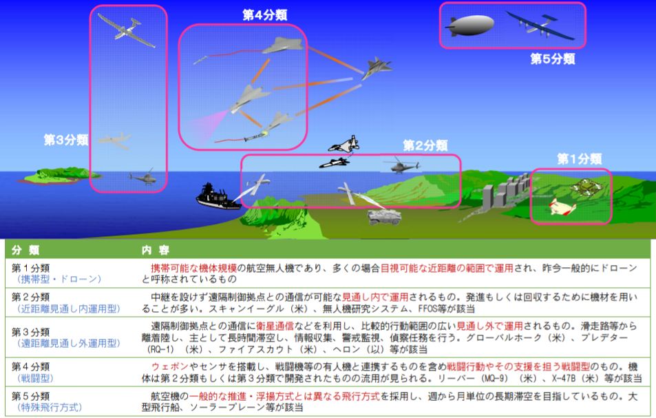 日本の無人機関連の開発なら、2016年の「将来無人装備に関する研究開発ビジョン」が、現時点での公式見解かと。