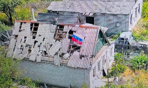 クラスノホリフカを巡る戦い、市内中心部の北端にロシア国旗が掲げられる