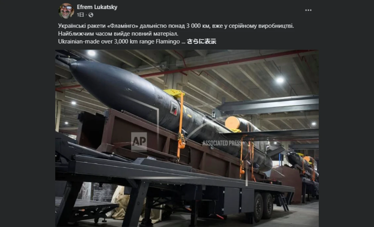 “フラミンゴミサイルの射程距離3,000km、弾頭重量1,150kgで、これまでウクライナ製長距離ドローンで到達できなかった目標を破壊できるようになる。このミサイルのナビゲーションシステムもロシアの電子戦システムから保護されており、テストでロシア連邦領内の目標を攻撃するのに成功した”